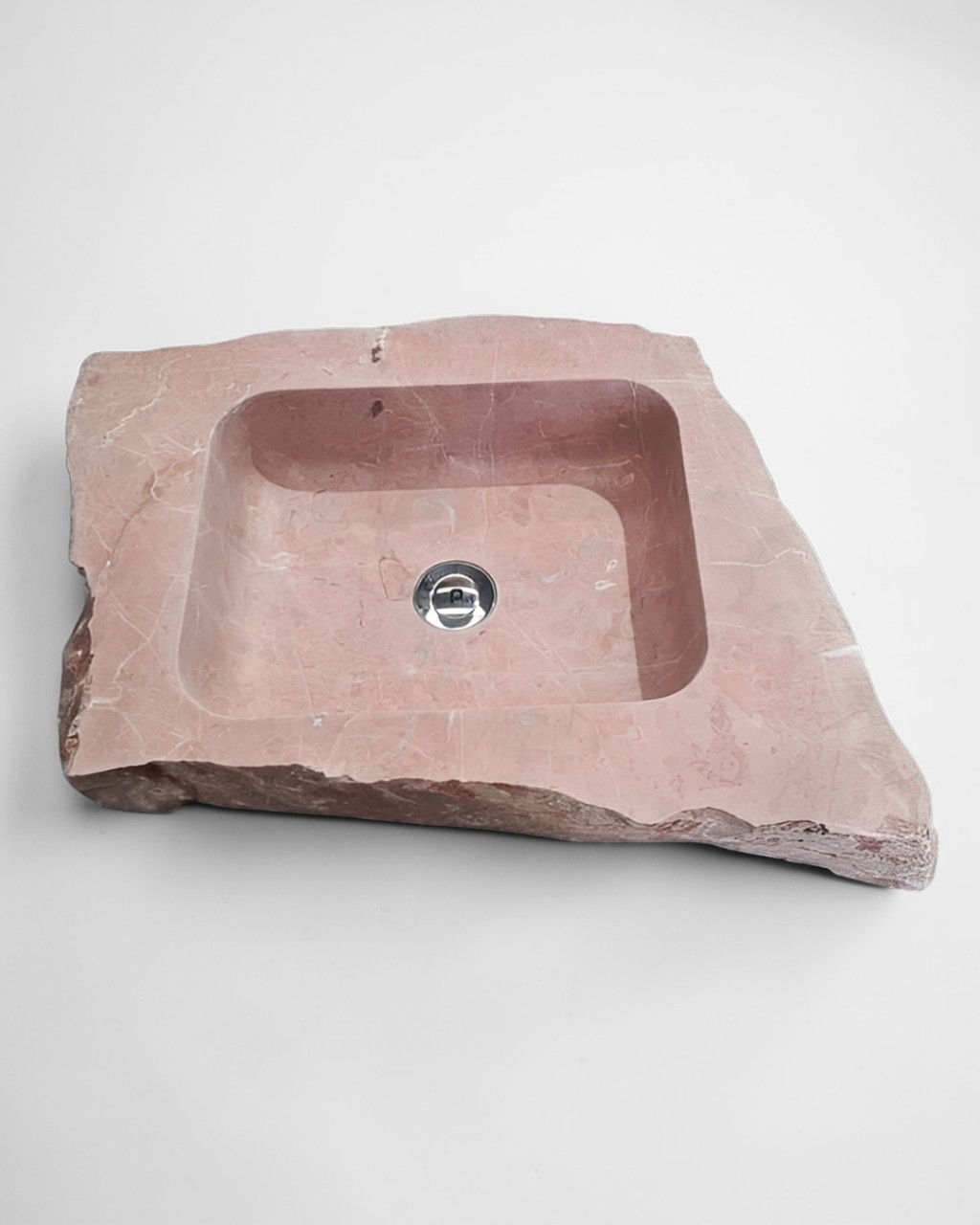 Lavabo macizo fabricado en una sola pieza de Mármol Rojo Alicante. Su tono rojizo natural y su diseño macizo lo convierten en un elemento decorativo único, moderno y elegante, ideal para baños con personalidad.